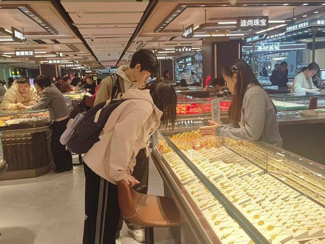 深圳水贝消费者在挑选金饰。周良成/摄