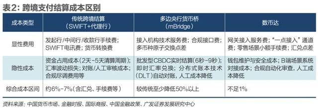 该项目基于区块链与分布式账本技术,实现多国央行数字货币的互联互通,具有交易实时到账、成本低廉、流程透明、风险可控等显著优势。国金证券报告显示,实现多方点对点直接交互,减少了传统跨境支付模式对SWIFT和代理银行的依赖,使跨境支付结算时间从3天-5天缩短至6秒-9秒,成本显著降低。