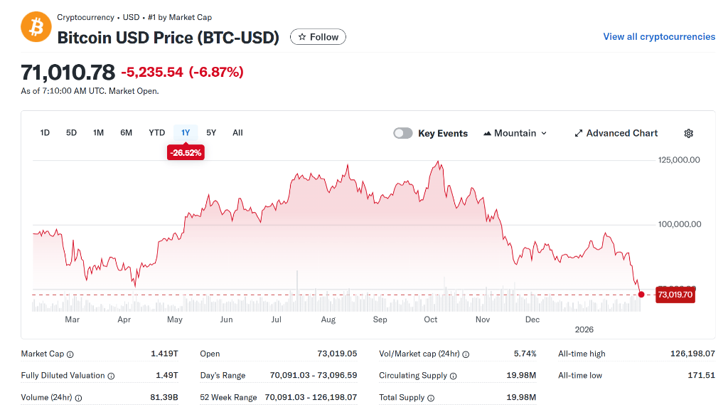 比特币正在经历从纯粹投机资产向机构化资产的痛苦转型。这一全球最大加密货币2月3日跌至约73000美元,较去年10月约125000美元的峰值下跌超40%。标志着所谓"小飞侠效应"(Tinkerbell Effect)阶段的终结——即仅靠信仰支撑的投机热潮正在退却。