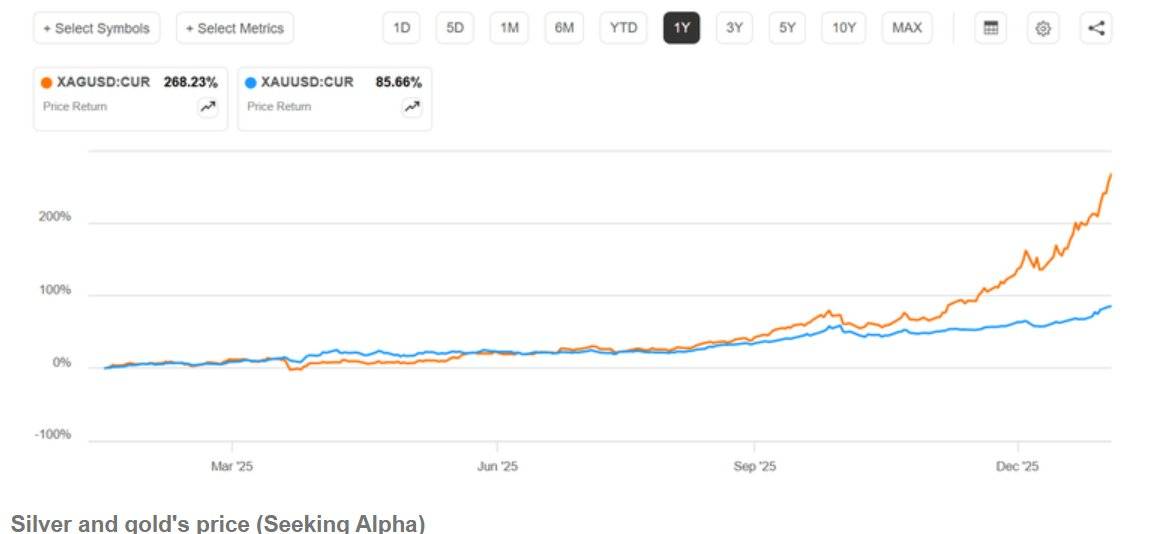 今年 1 月至今,白银已上涨约 54%,较去年同期更是惊人地飙升了 264%。