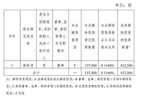 上述股票解除限售的明细情况及原因如下: