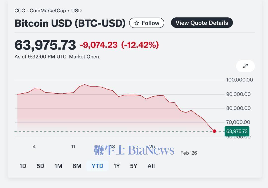Bitcoin 价格一路狂跌,一度触及 66,675 美元的低点,创下自2024年11月——即特朗普赢得美国大选以来的最低水平。