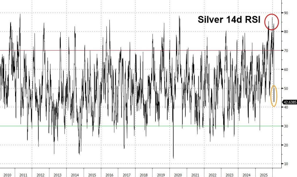 在此之前,交易所已多次上调保证金、收紧持仓上限。当多头无法继续加杠杆推高价格,游戏戛然而止——随后4个月内,银价暴跌67%。