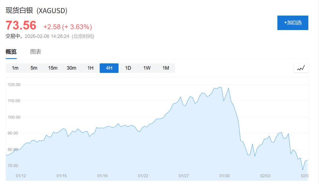 过去一周现货白银已从1月29日创下的历史高点回落超过40%。周四白银暴跌19%,已抹去了今年以来的所有涨幅,市场动荡程度前所未有,堪称1980年以来之最。