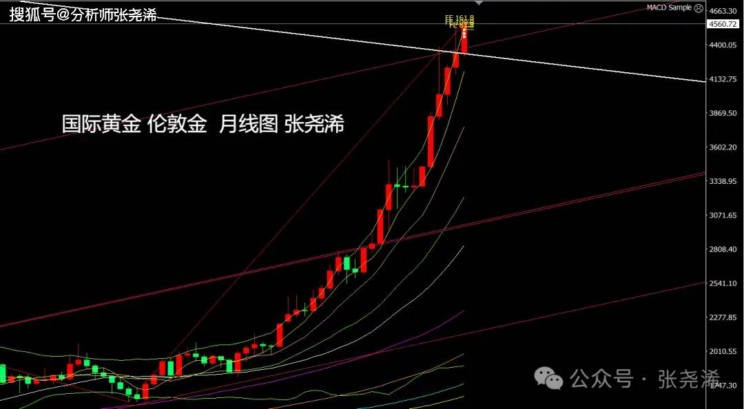 反之,如本月再度收取倒垂至趋势线之内,则需留意后市有再度展开较久的横盘调整或较大回调,去回踩4000-3900美元区域或更低位置的风险;