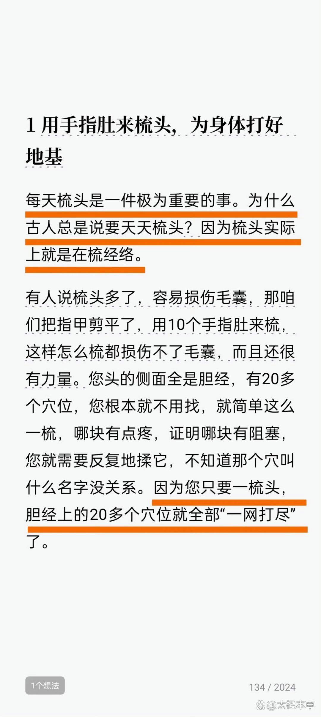 看到这里,终于知道我身体越来越好的原因了||头为诸阳之会,所有的气血都是奔着头上来的,头就怕堵住了,一堵住什么心血管疾病、脑梗死之类的问题就全来了。您把头一梳,头部一清爽,这些问