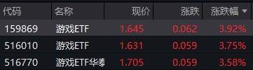 受盘面影响,游戏ETF涨超3%。