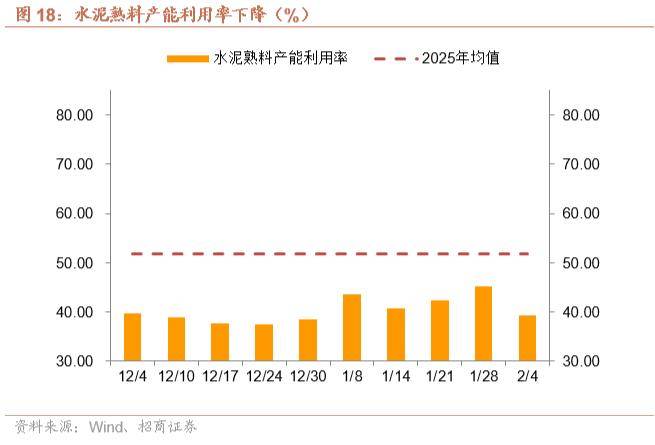 水泥熟料产能利用率为39.4%,环比下降5.79个百分点,同比增速为13.9%。