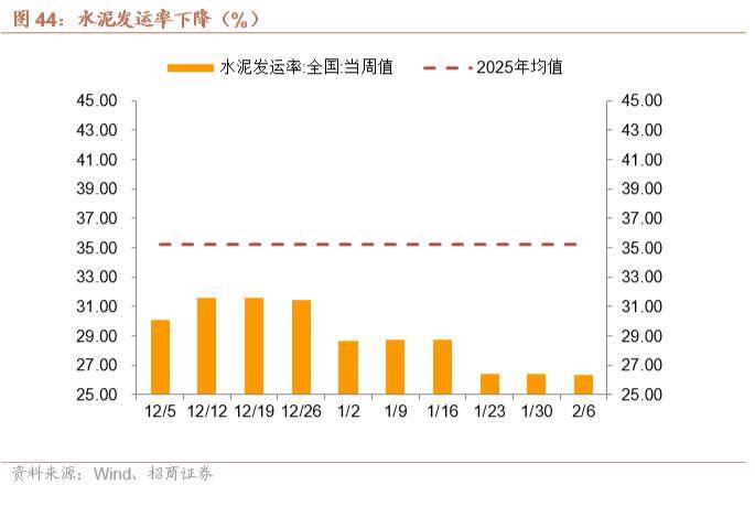 上周水泥发运率为26.35%,环比下降0.06个百分点。
