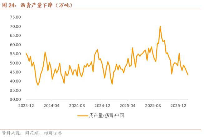 上周沥青产量43.6万吨,环比下降2.0万吨,同比增速为13.2%。