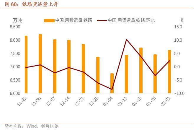 上周铁路货运量为7610.9万吨,环比上升2.27%。