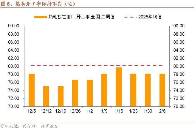 上周热卷开工率为78.13%,环比持平,同比增速为-5.7%。