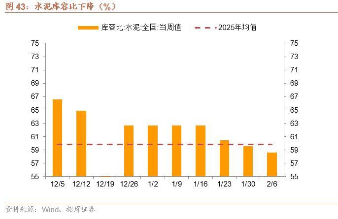 上周水泥库容比为58.63%,环比下降0.96个百分点。