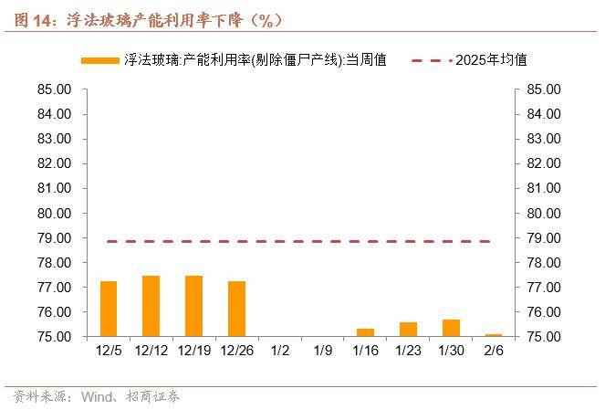 上周浮法玻璃产能利用率为75.09%,环比下降0.61个百分点,同比增速为-3.7%。