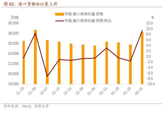 上周港口货物吞吐量28159.7万吨,环比上升9.27%。
