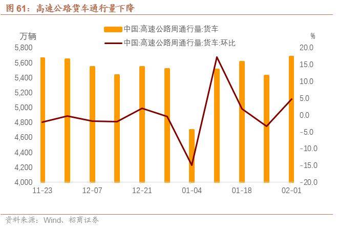 上周高速公路货车通车量为5683万辆,环比上升4.75%。