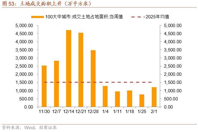 上周土地成交面积为1205.25万平方米,环比上升445.62万平方米。