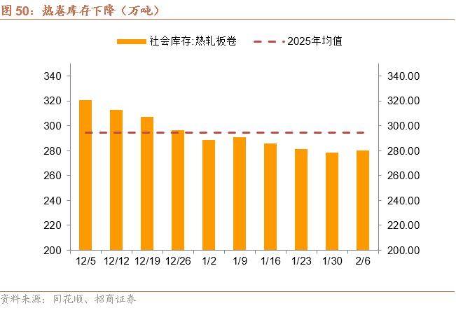 上周热卷社会库存环比上升2.12万吨至280.45万吨。