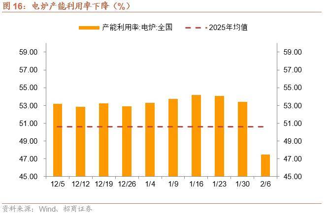 上周电炉产能利用率为47.5%,环比下降5.89个百分点,同比增速为80.3%。
