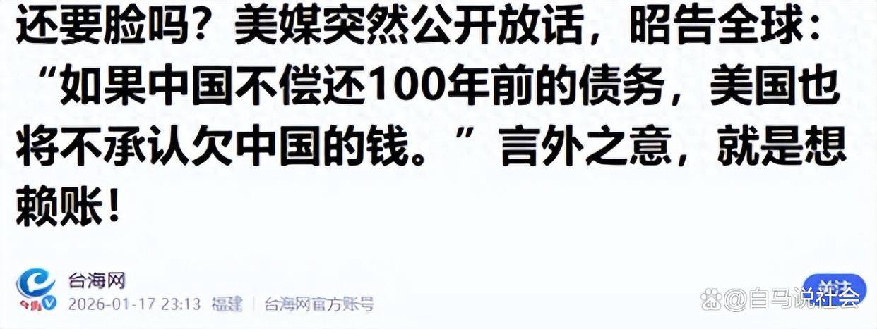 一百年前,中国积贫积弱,被迫承受列强强加的“恶债”,饱受欺凌;一百年后,中国早已崛起,不再是任人宰割的弱国。我们有实力,更有底气,拒绝任何不合理的要求。“恶债不偿”的原则,既有国际法的支持,也有美国自身司法判决的佐证。美国企图借旧账生事,注定是徒劳无功。至于其所欠中国的债务,无论美国如何炒作、如何寻找借口,都无法改变其必须偿还的事实。妄图通过耍赖来逃避债务,最终只会搬起石头砸自己的脚,让美国的信用彻底破产。