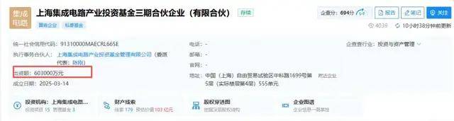 近日,上海集成电路产业投资基金三期合伙企业(有限合伙)完成工商变更登记,出资额实现大幅扩容,从原有5.3亿元增至60.3亿元,增幅约1038%。