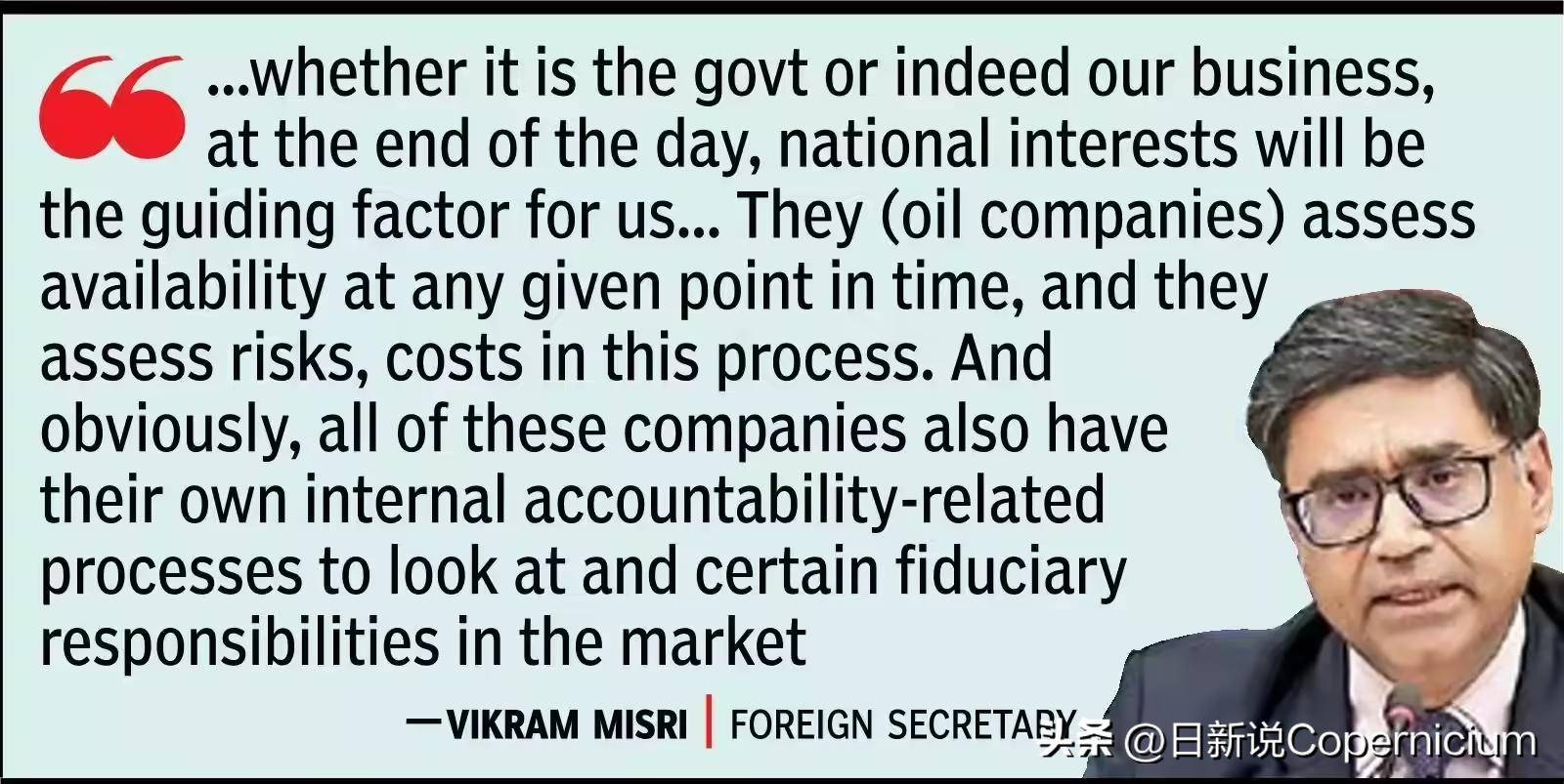 米斯里最后表示,印度不仅是全球最大的能源消费国之一,也在全球能源市场的稳定中发挥着重要作用。这也是为什么我们从多个国家进口石油的原因之一……我们制定的能源政策的关键驱动力就是确保充足的供应、合理的定价和可靠的能源来源。我们从几十个国家进口原油,绝不依赖任何单一来源,也没有这种打算。他的话语无疑传递出印度在能源领域的独立性与战略自主。