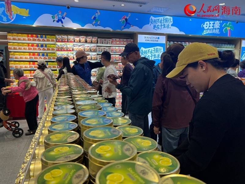 消费者在海口京东日用消费品免税店选购进口“年货”。人民网记者 李学山摄