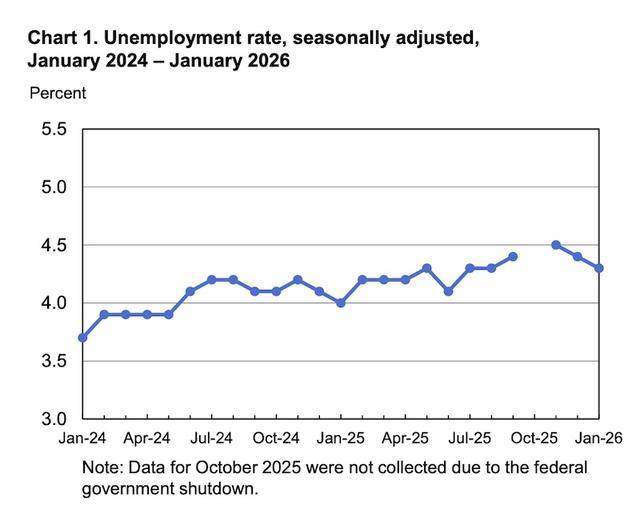 根据机构测算,随着人工智能行业兴起和就业人口结构变化等因素影响,美国经济每月只需新增约5万人甚至更少岗位,即可跟上劳动年龄人口增长。1月约有38.7万人进入劳动力市场,而家庭调查显示就业人数激增52.8万人,远超新增劳动力,推动失业率下行。
