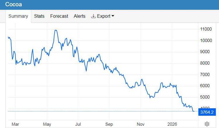 周三,国际可可期货价格跌破3800美元关口,创2023年10月以来的最低水平,市场在全球需求疲软与供应增加之间寻求平衡。