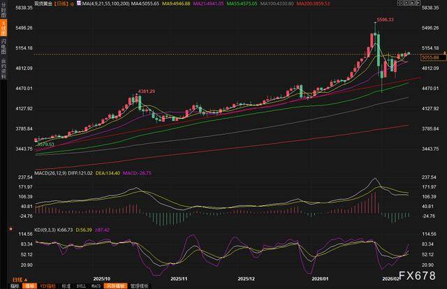 从技术面看,金价在经历1月底的大幅回调后,已形成明显的低点抬升、高点同步上移格局。目前5100美元关口曾被短暂突破,短期上方压力位看向5150-5200美元区间。更长期维度,多家机构已大幅上调2026年全年目标价:部分预测认为年底可能接近6000美元甚至更高,反映出对黄金结构性牛市的强烈共识。