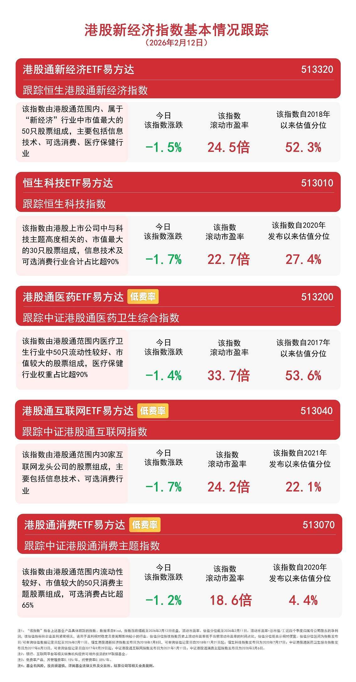 截至收盘,中证港股通消费主题指数下跌1.2%,中证港股通医药卫生综合指数下跌1.4%,恒生港股通新经济指数下跌1.5%,恒生科技指数、中证港股通互联网指数均下跌1.7%。Wind数据显示,截至昨日,恒生科技ETF易方达(513010)和港股通互联网ETF易方达(513040)近10个交易日合计净流入额分别达到23亿元和8亿元,最新规模均创下成立以来新高。