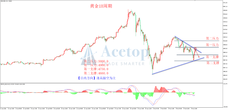 因美元走强多头获利回吐抛售黄金,同时美伊开启破冰谈话地缘局势有所缓和,打压了黄金的避险买盘,金价高位跳水回落至4650.0美金附近,随后多头支撑开始了超跌反弹节奏,市场静待美伊谈判结果,选择短线方向。
