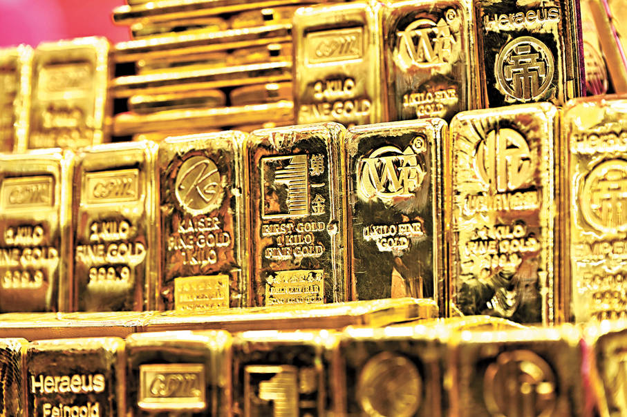 ●金价延续2025年涨势,近期突破4,900美元水平。图为香港黄金交易所展示黄金金条。 中新社
