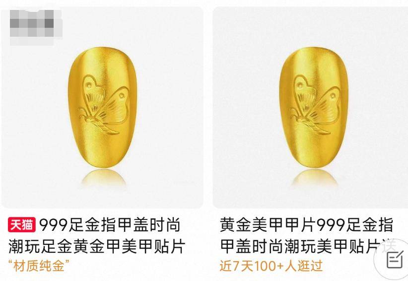 周大福等头部品牌的小件金饰,甚至老铺黄金的金条都成了美甲店的“高端原料”,有消费者表示,愿意花数千元、上万元打造“黄金甲”。