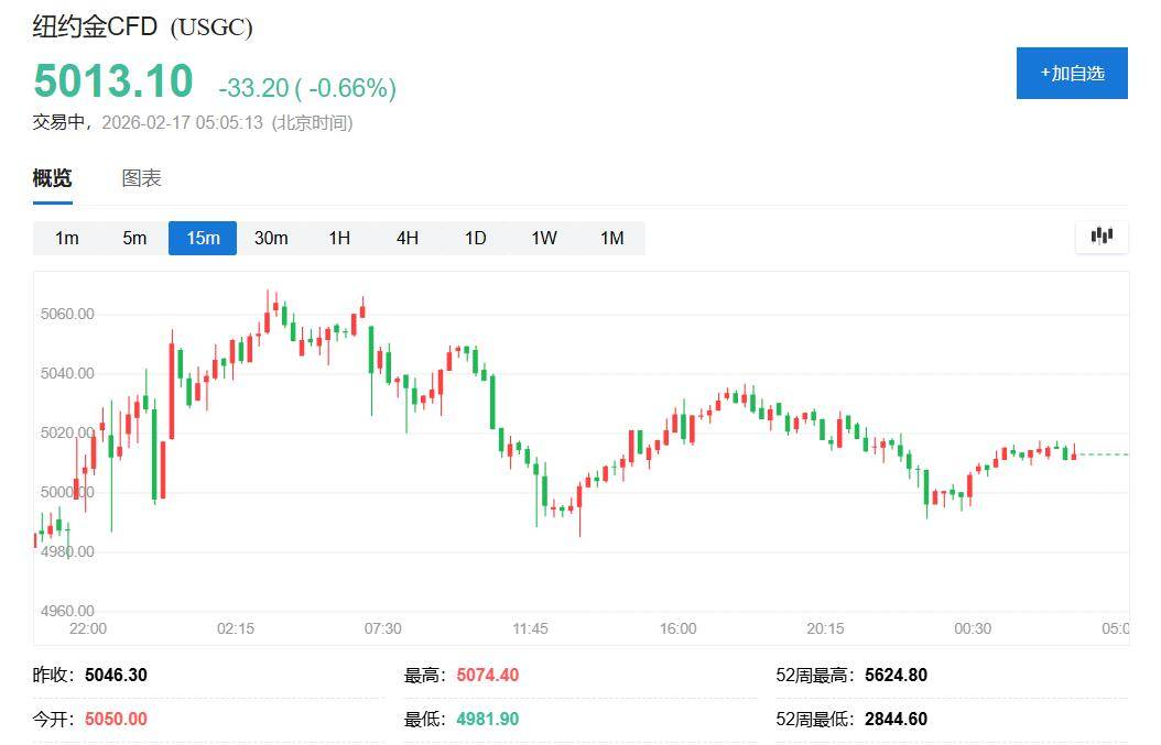 贵金属市场周一回落。上周五重新站上5000美元关口的黄金周一重回这一关口下方,全天基本处于跌势。亚市盘中刷新日低时,纽约黄金期货跌至4981.9美元,日内跌近1.3%,现货黄金跌至4966.41美元,日内跌约1.5%。