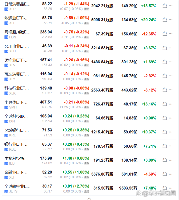 【日用品ETF收跌超1.4%,领跌美股行业ETF,标普能源板块跌约1.4%】周二(2月17日),日常消费品ETF收跌1.44%,能源业ETF跌1.09%,网络股指数ETF、可选消费ETF、科技行业ETF、半导体ETF至多跌0.32%,银行业ETF则涨0.43%,生物科技指数ETF涨0.86%,金融业ETF涨1.06%,全球航空业ETF涨2.76%。