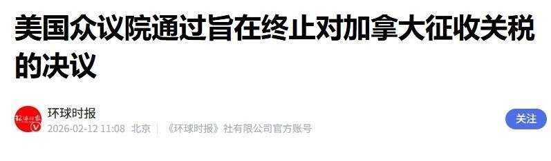 特朗普的关税政策不仅在经济上彻底失败,在法律和政治上也屡遭挫败,完全未能展现出当初宣扬的强大威力。美国下级法院已经做出裁决,明确表示总统利用《国际紧急经济权力法》随意加征关税,超出了总统的权限,违反了美国宪法中明确规定关税征收权归国会所有的原则。 截至目前,联邦最高法院仍未对这一争议做出最终裁决,特朗普关税政策的合法性始终存在巨大的疑问。而令白宫更加意外的是,即使是共和党内部,也出现了分裂,许多议员开始反对这项政策。2026年2月11日,美国众议院以219票赞成、211票反对通过了一项决议,决定终止对加拿大商品的惩罚性关税,其中有多名共和党议员公开倒戈,明确支持这一决议。尽管这次投票的实际效力有限,难以立即改变现有的关税格局,但这项投票仍然反映出党内支持率的严重下降,特朗普关税政策受到了重大政治挑战。