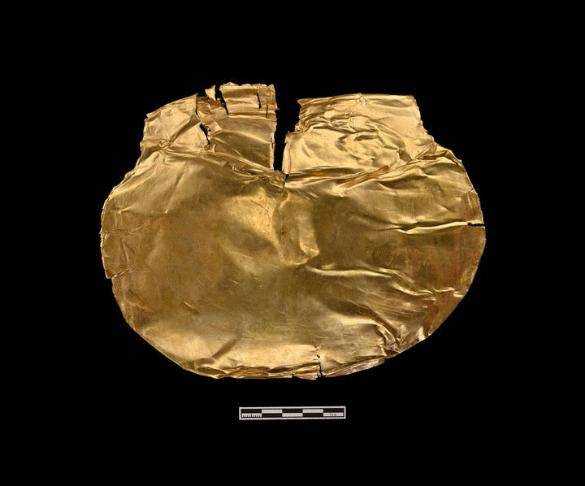 郑州商城书院街贵族墓地中出土的金覆面(资料照片)。(郑州市文物考古研究院提供)