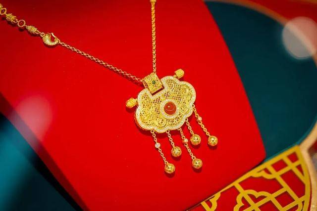 这里,黄金珠宝种类齐全、款式多样。黄金锁骨链、几何造型耳坠、各种黄金与时尚“IP”的结合款时尚新颖,白银手镯、朱砂、玉石和翡翠等一应俱全,巍巍亳都等商都文创产品也光彩夺目。