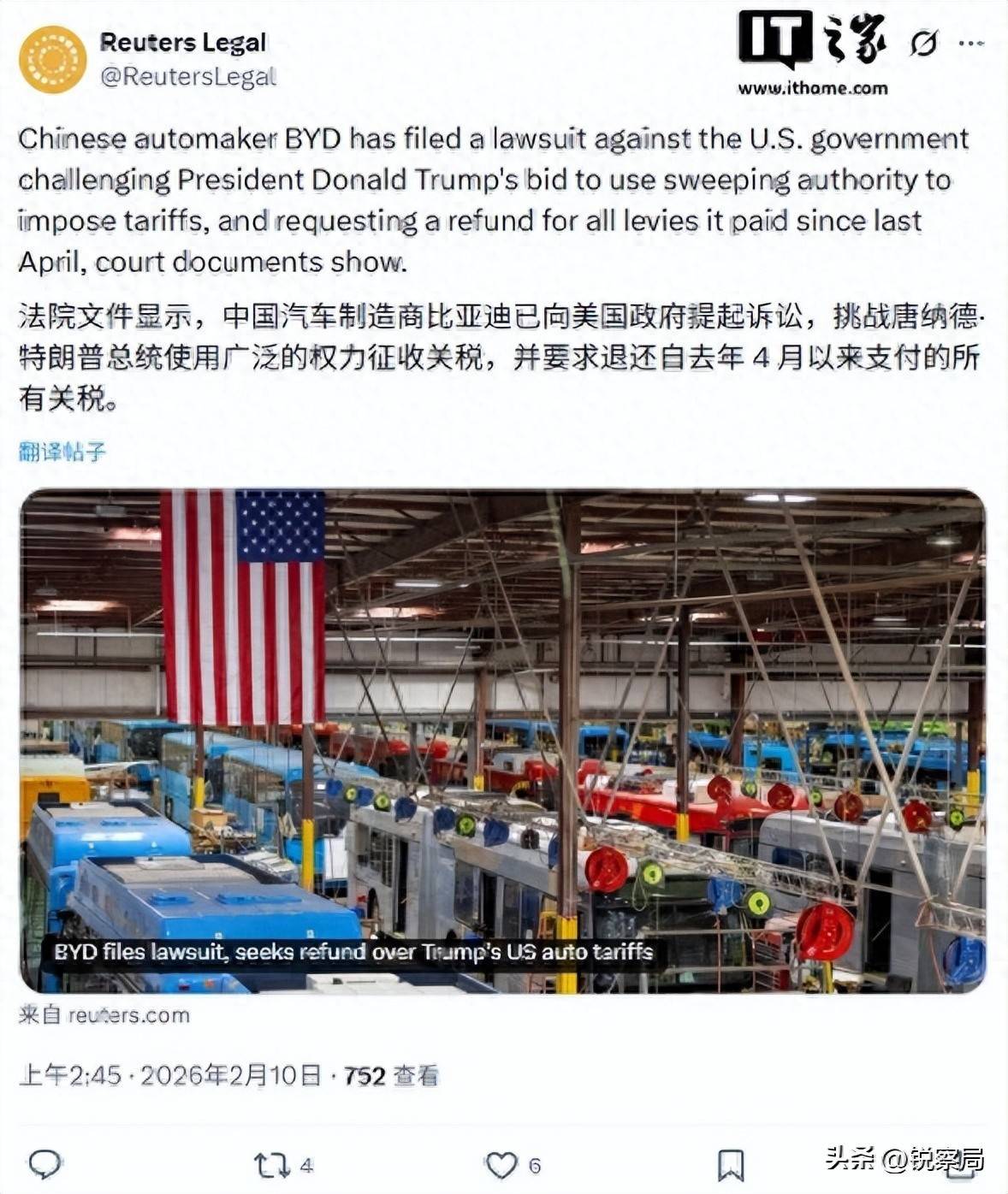 春节本应是团圆和放松的时光,但就在这个时刻,比亚迪却投下了一颗震动全球贸易格局的重磅炸弹。它正式向美国政府提起诉讼,要求退还自2025年4月以来被强制征收的所有关税。这是中国汽车企业首次通过法律途径挑战美国的关税政策,直接走进美国法院。作为中国汽车出海史上的标志性事件,比亚迪的这一举动不仅仅是一次普通的诉讼,更标志着中国企业在全球贸易博弈中逐步学会用规则保护自己的权益。