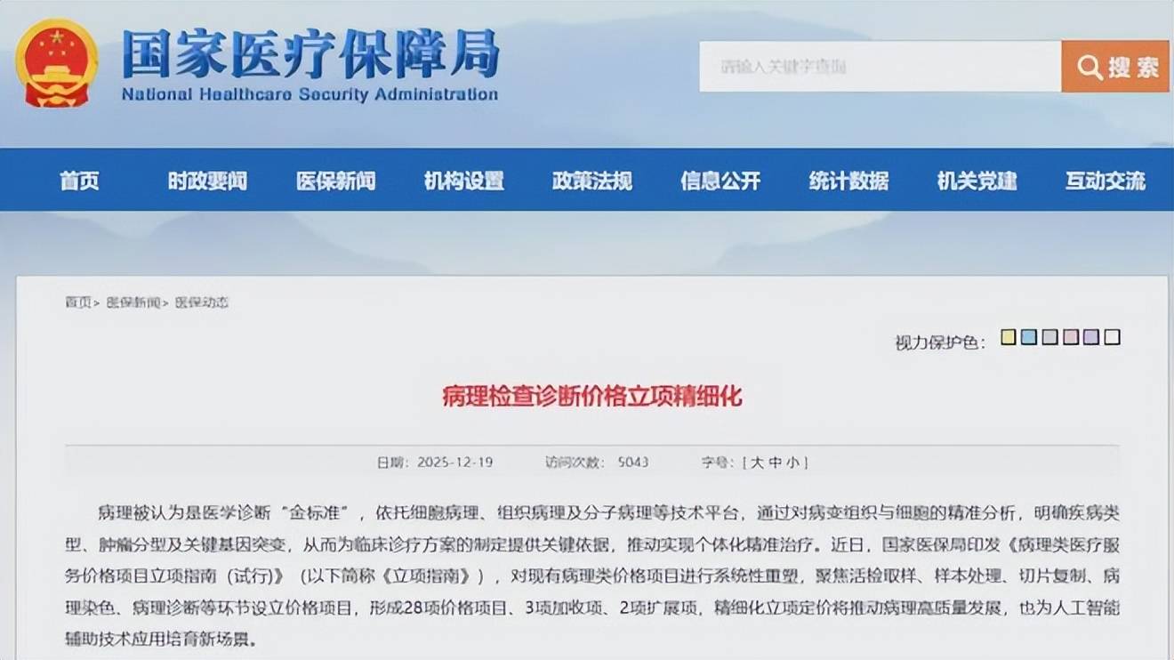 9、病理检查诊断价格立项精细化(国家医保局官网.2025-12-19)