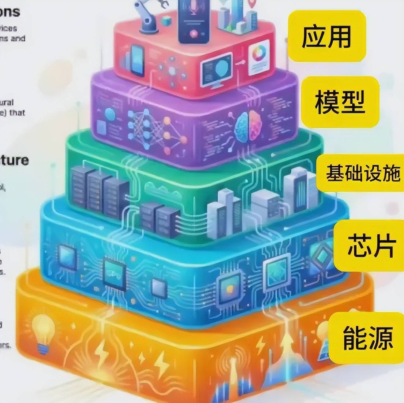 黄仁勋提出的“AI五层蛋糕”,从下到上依次是能源、芯片、基础设施、大模型、应用,这五层环环相扣,构成了AI产业的完整生态,也精准映射出中美两国的竞争态势。他强调,这场竞争不是单一环节的比拼,而是全产业链的较量,美国有其不可撼动的优势,中国也有自己的独特底气,而这种“各有长短”的格局,恰恰为创业提供了缝隙。