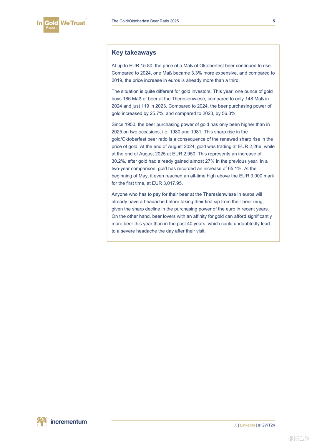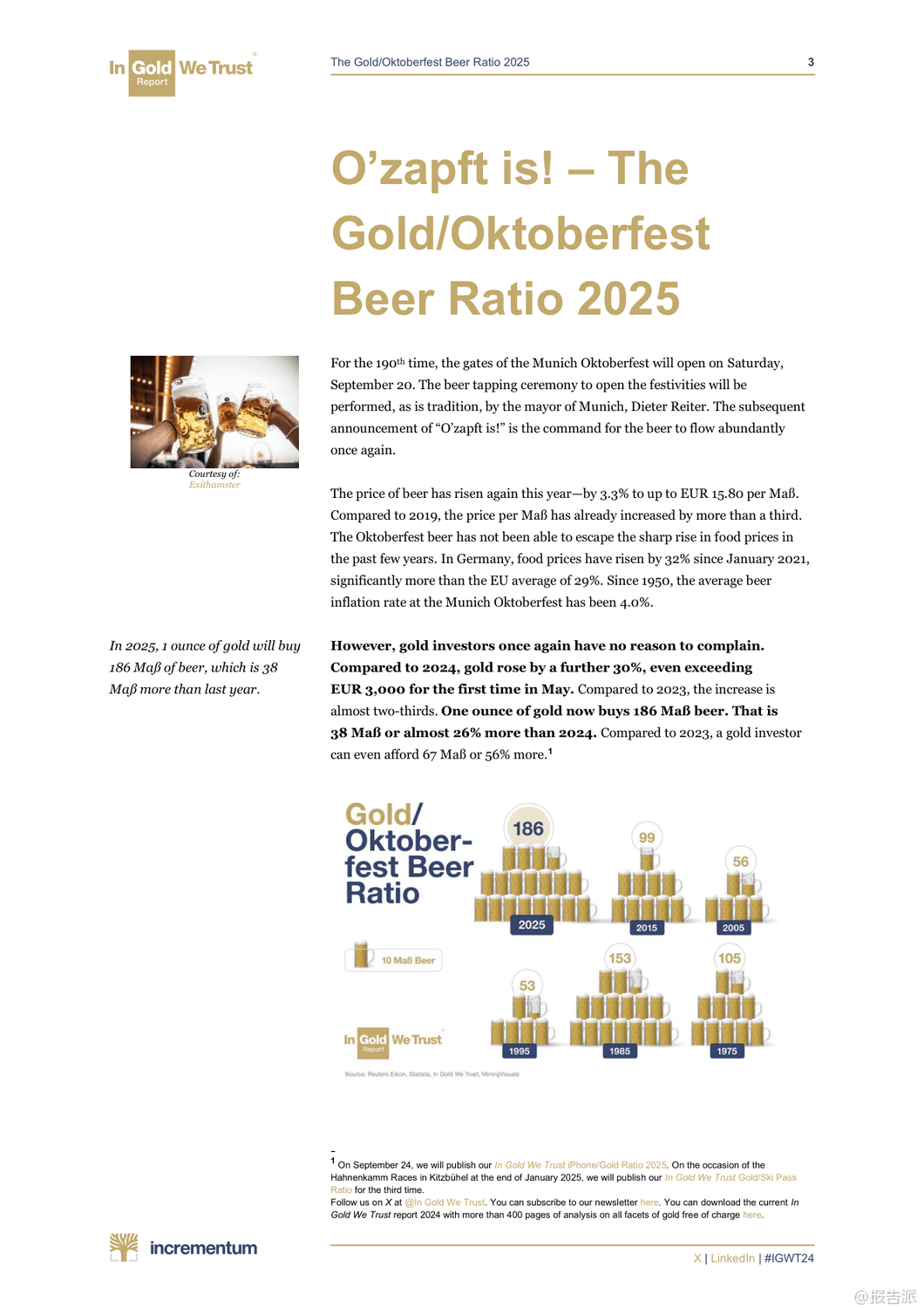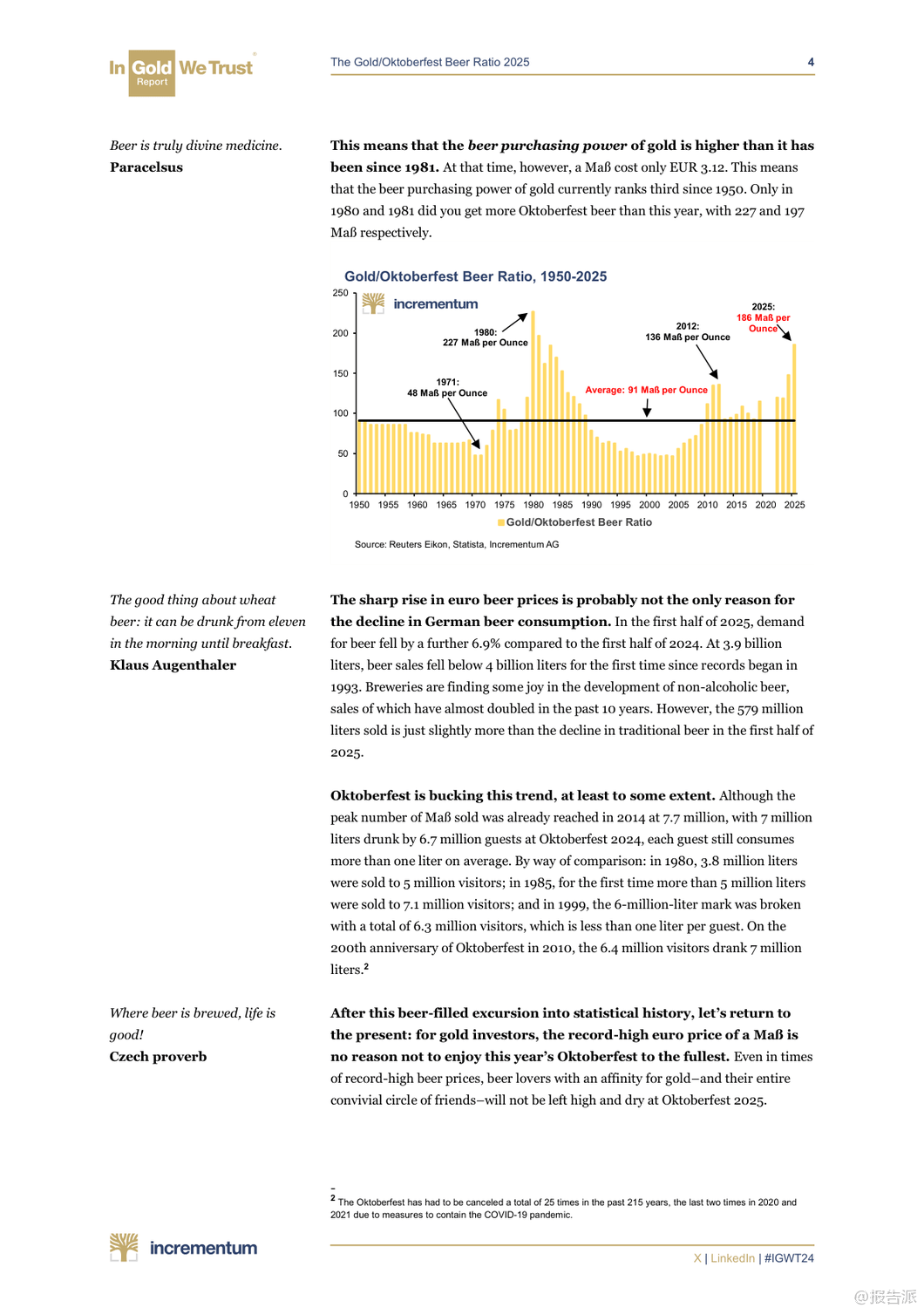 2025年,一项别具一格却极具深意的经济观察报告——《黄金与慕尼黑啤酒节啤酒比率报告》再次引发市场关注。
