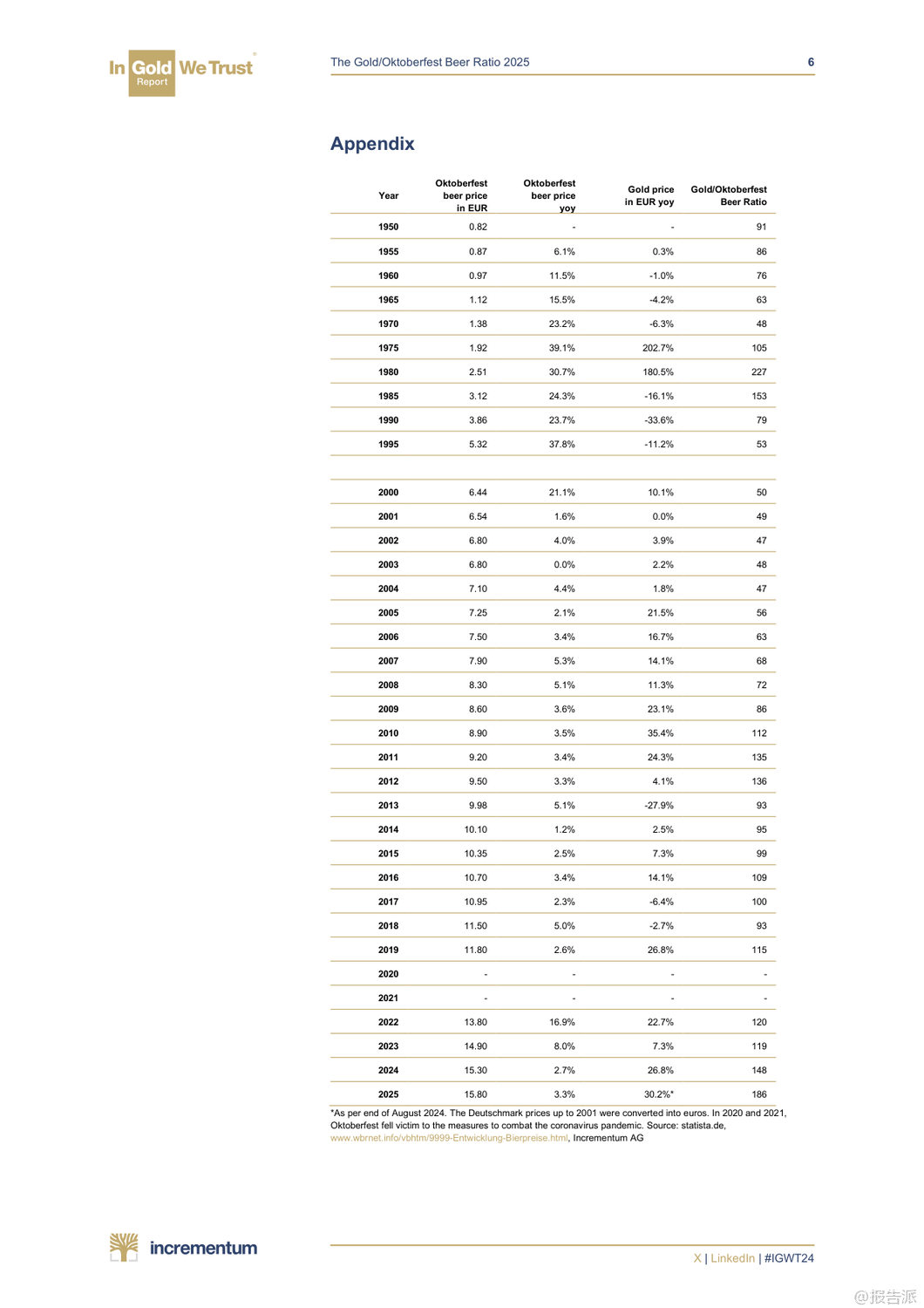 自1950年以来,慕尼黑啤酒节的平均年化通胀率高达4.0%。