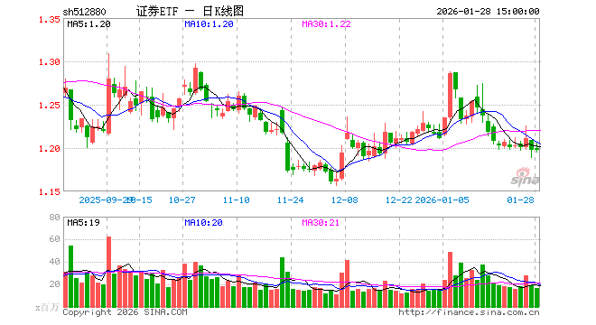 1月28日,证券ETF(512880)涨0.00%,成交额20.22亿元。当日份额减少7600.00万份,最新份额为465.09亿份,近20个交易日份额减少4.60亿份。最新资产净值计算值为556.02亿元。
