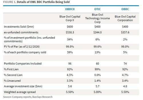 Blue Owl本周的一系列动作凸显其面临的多重压力。该公司宣布出售14亿美元贷款资产,其中OBDC II出售6亿美元(占其总投资承诺的34%),OTIC出售4亿美元(占6%),另一只公开交易的Blue Owl Capital Corp(OBDC)出售4亿美元(占2%)。