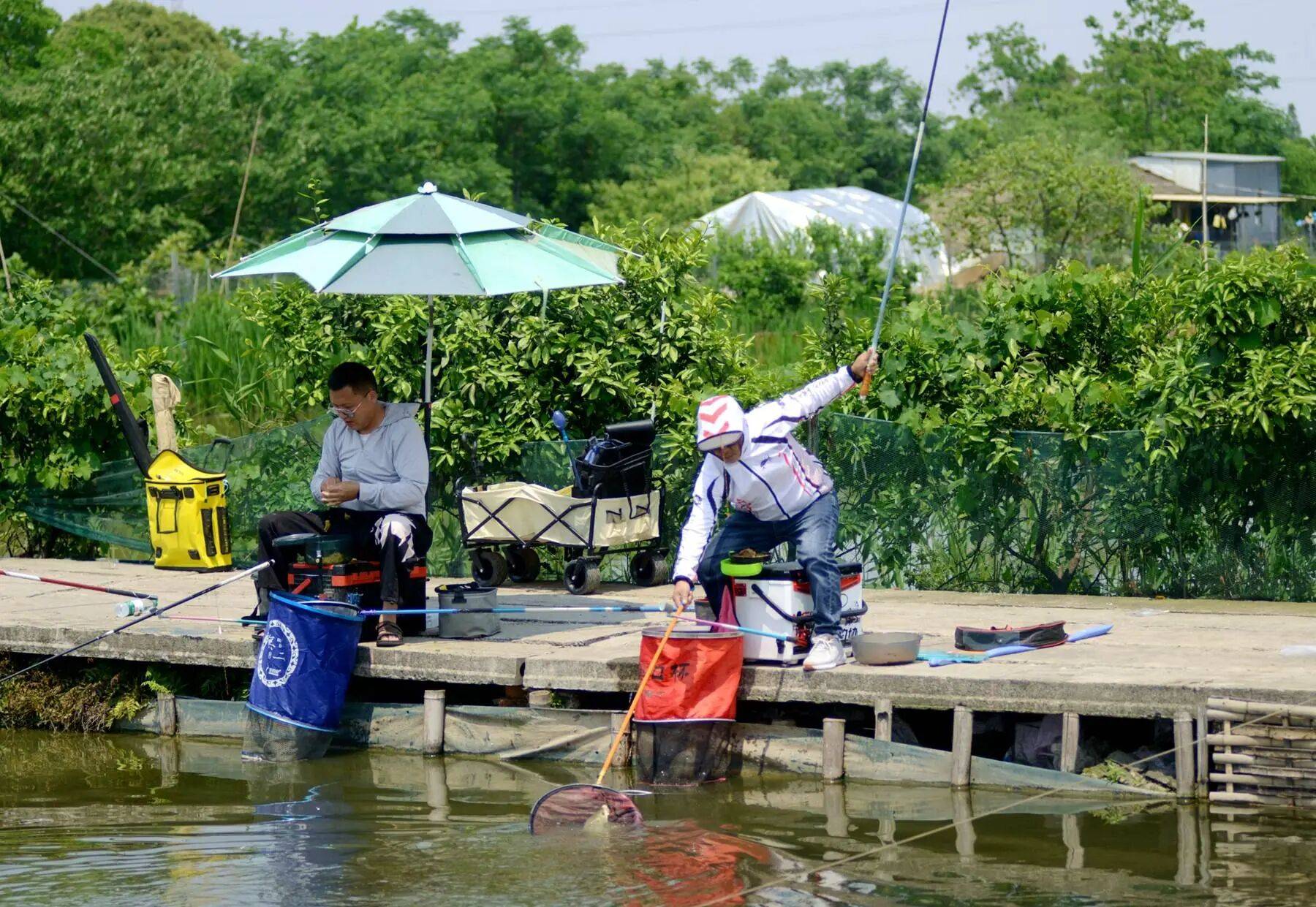 于是,我没按常规出牌,而是把原本习惯的1.5钩距,加大到了4个钩距。果然,旁边几个用成品子线(标准钩距)的钓友,漂相总是乱糟糟的,有动作却打不着鱼。而我这边,稳稳地下顿,一提就是漂亮的鲫鱼,还时不时来个双飞。