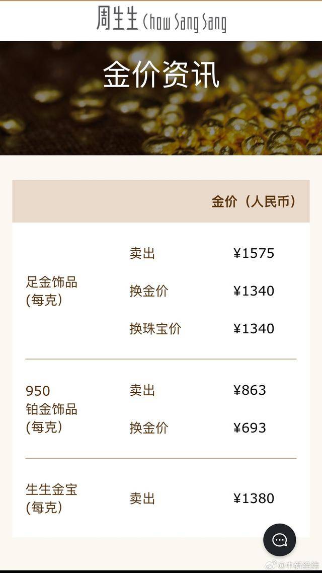 国内品牌金饰延续上涨趋势,周生生足金饰品报1575元/克,较21日1550元/克涨20元。