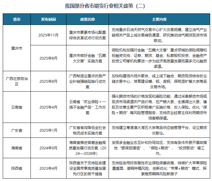 我国各省市也积极响应国家政策规划,对各省市期货行业的发展做出了具体规划,支持当地期货行业稳定发展,比如北京市发布的《北京市深化改革提振消费专项行动方案》、上海市发布的《推动海关特殊监管区域深化改革转型升级上海行动方案(2025-2027年)》。