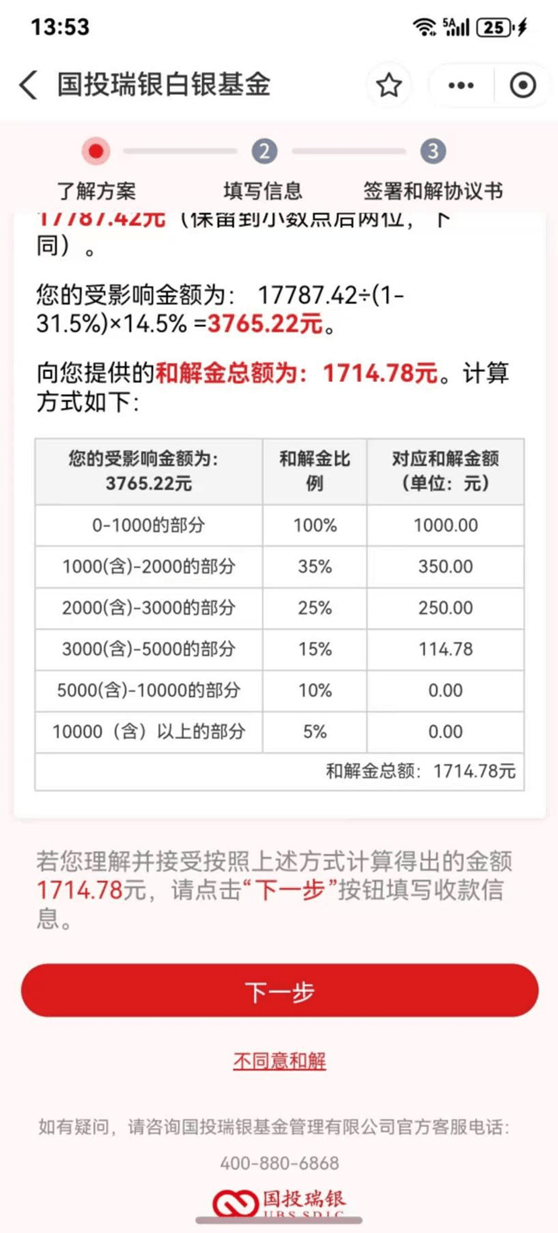 但另一边,受影响金额超过1万元的投资者,态度则犹豫得多。一名用户发帖称,其在持有国投瑞银白银期货基金期间,提交了10261.95元的赎回申请。根据其个人计算,若按全额退款标准,应到账2171.43元。但基金公司的实际退款比例远低于预期,预计仅能退还1300余元,目前已提交申请。“先把钱拿到手再说。”他表示。